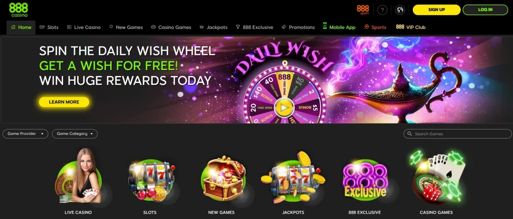 One of the most attractive features on 888 Arabic is the Wish Wheel, a daily reward mechanic that gives extra chances to win bonuses on top of standard promotions.